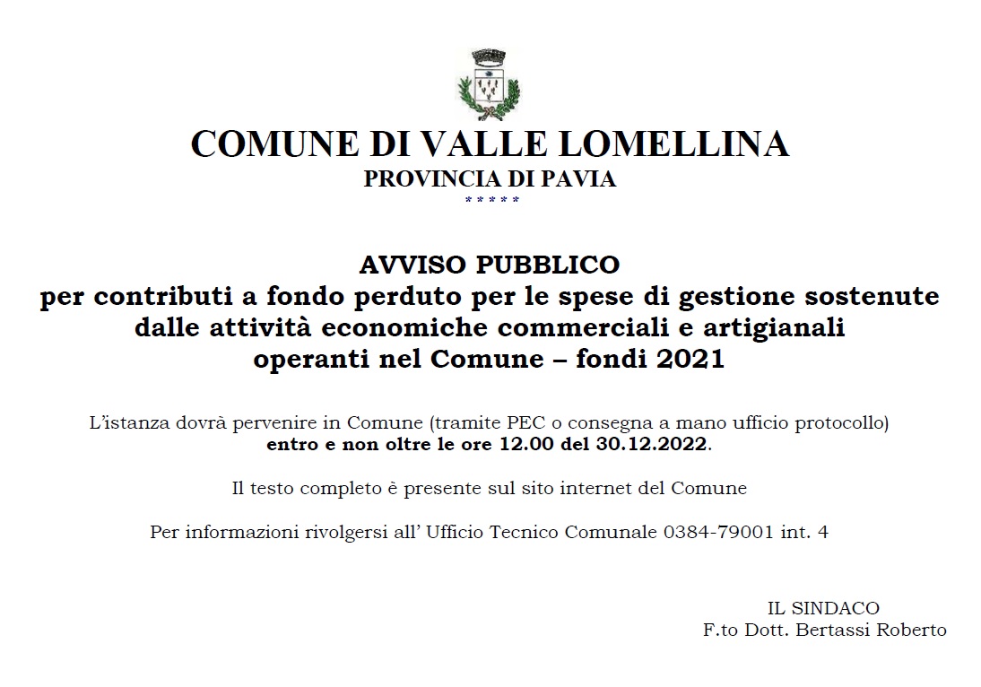 contributi a fondo perduto per le spese di gestione sostenute dalle attività economiche commerciali e artigianali