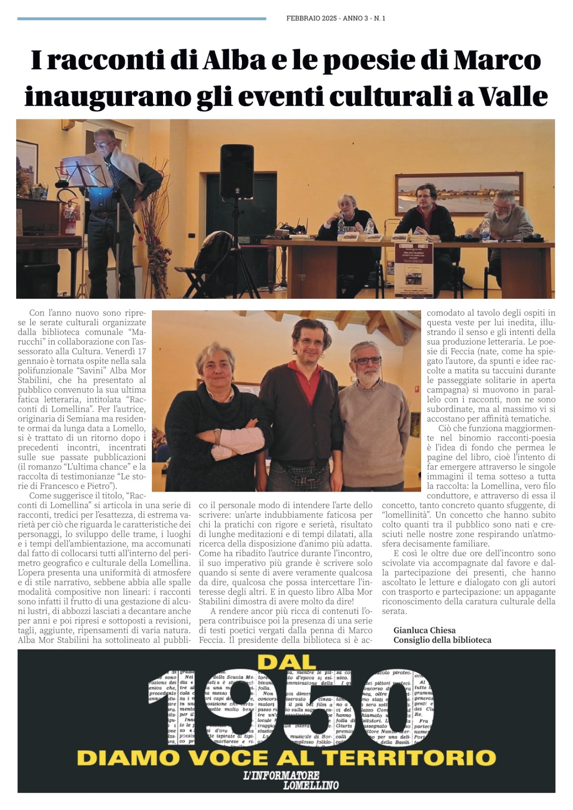 on line il 1° numero, del 2025, del giornalino "Val"