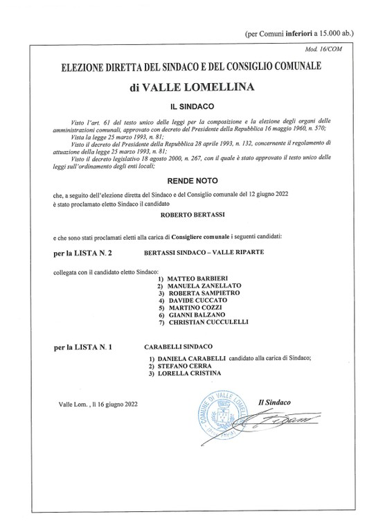 Descrizione Elezione diretta del Sindaco e dei Consiglieri Comunali Allegati Documenti Riepilogo [.jpg 66,07 Kb - 28/06/2022] A cura di Relazioni con il Pubblico Ultimo aggiornamento pagina: 28/06/2022 10:11:33