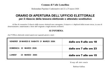 Orario di apertura dell'Ufficio Elettorale