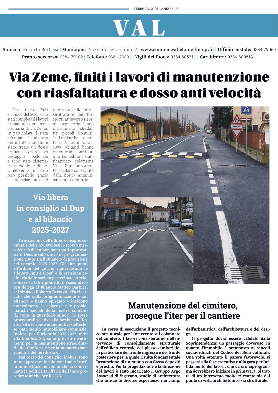 on line il 1° numero, del 2025, del giornalino "Val"